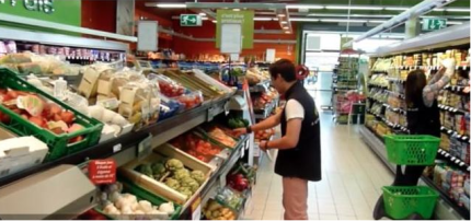 - Des rayons métiers traditionnels de la grande distribution : boulangerie, pâtisserie, charcuterie, traiteur, rôtisserie, poissonnerie, fromages, fruits et légumes.